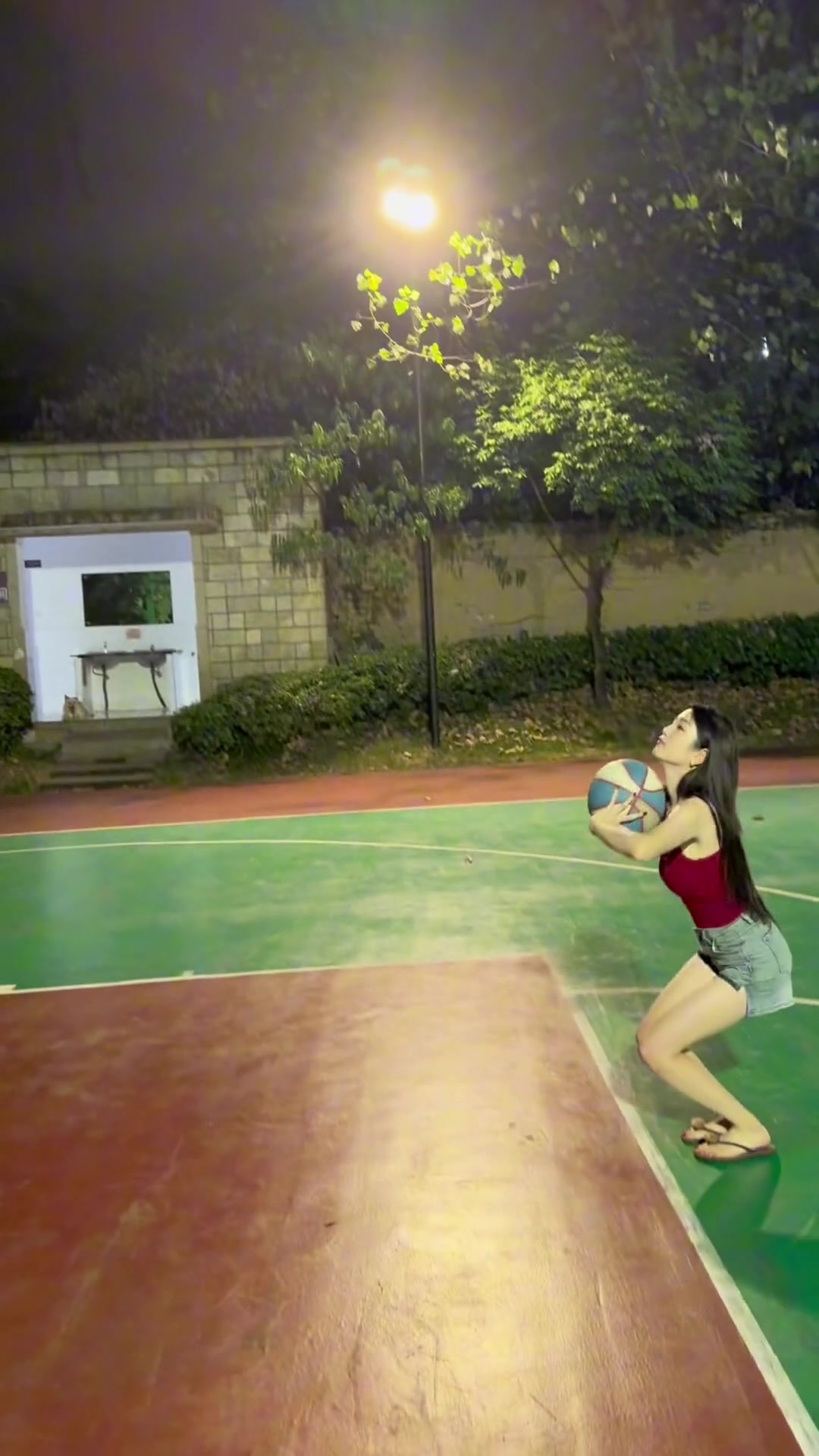 白皙清凉小姐姐投个篮~看了三遍都没注意这球进了没有
