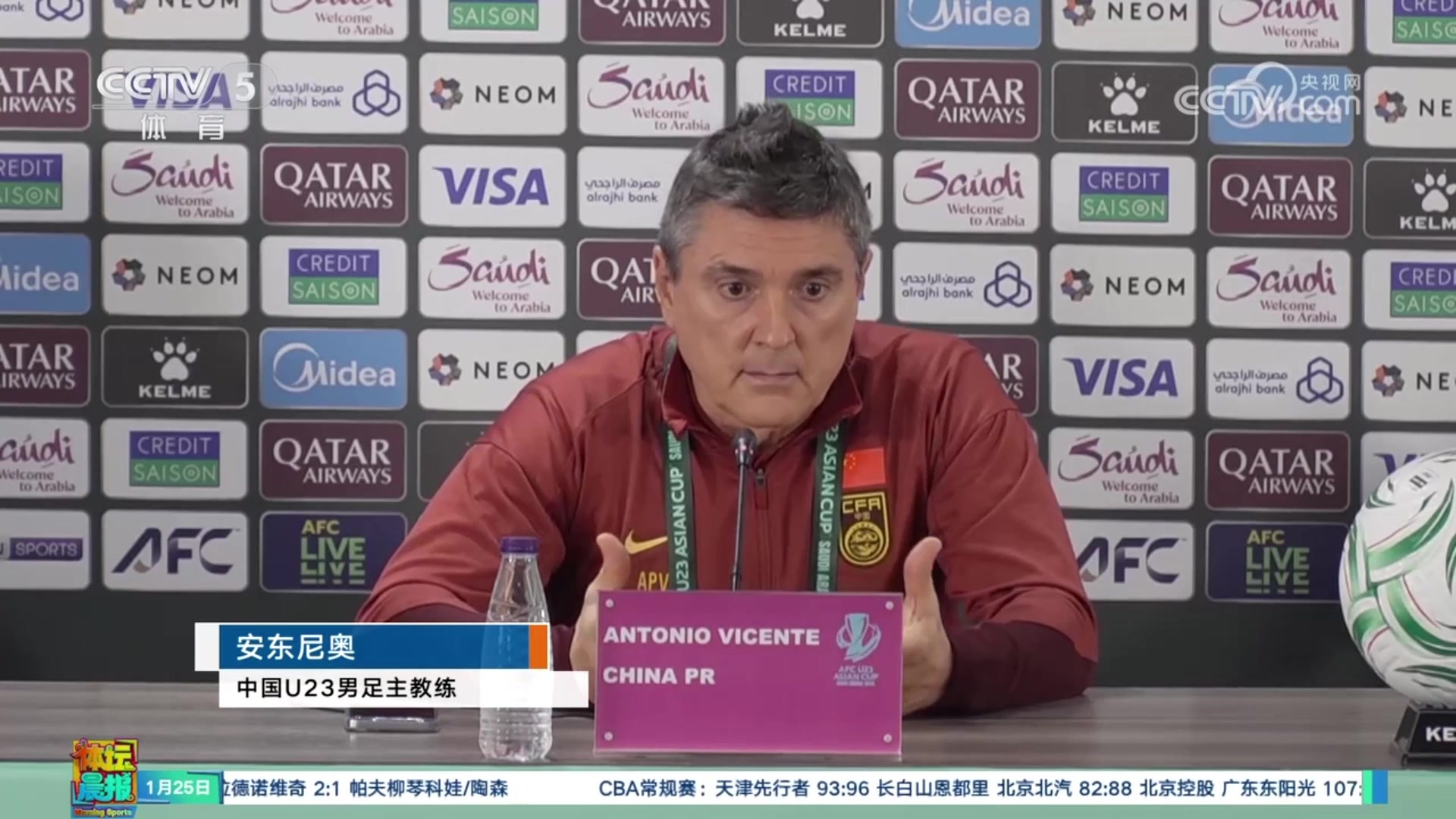 吓于大宝一跳!实拍:U23亚洲杯决赛场边两个沙特球童剑拔弩张